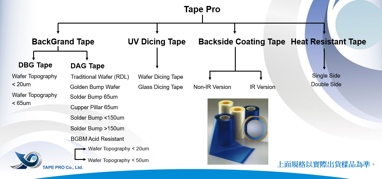 For BSM(back side metallization)的BG tape,可在260度C環境下一小時